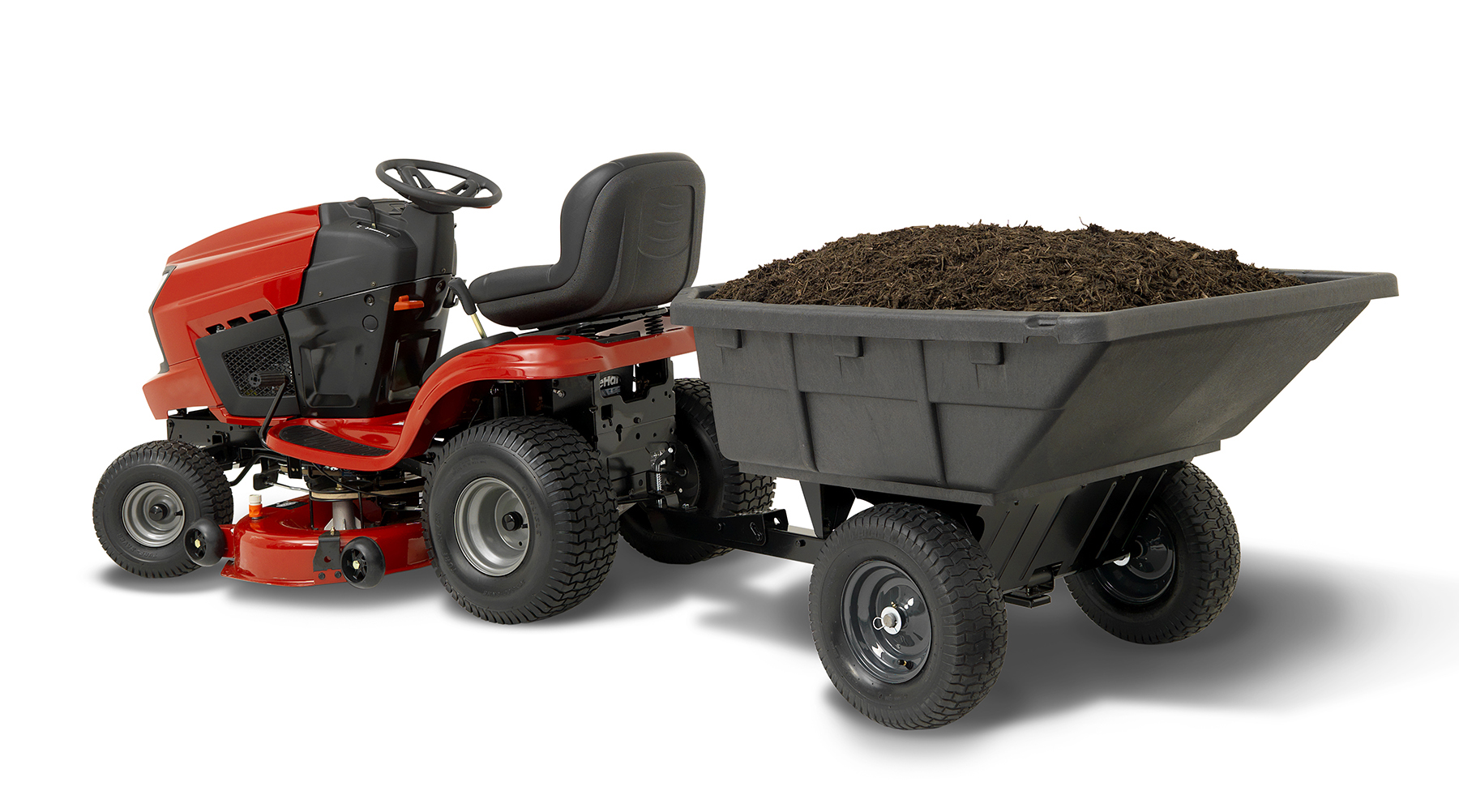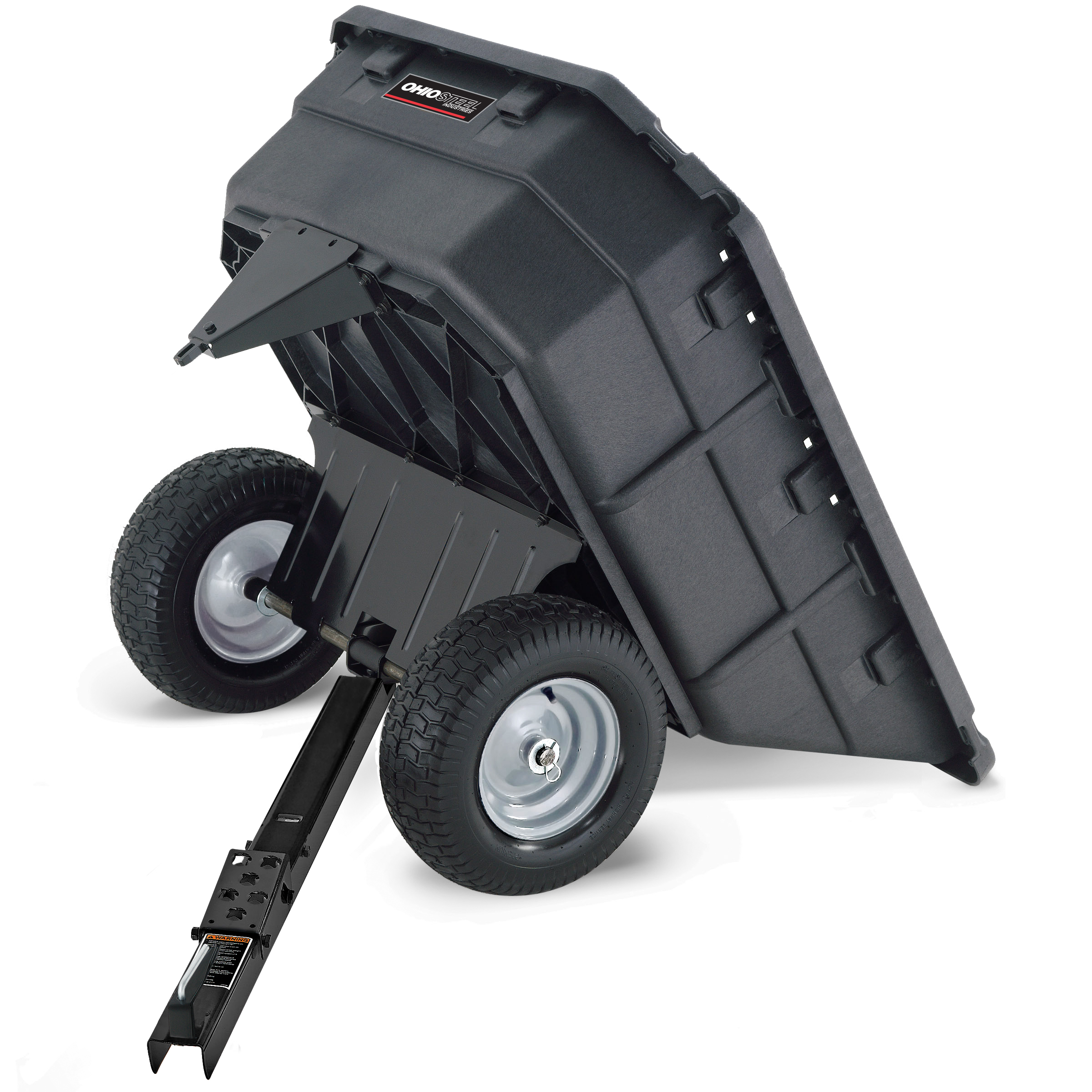 Commentaar: Deze aanhanger is ideaal voor grote transportklussen in uw tuin, op uw boerderij of op uw landgoed. De aanhangwagen heeft een draagvermogen van maximaal 545 kg, is gemakkelijk schoon te maken en roest niet. Een voetpedaal activeert de draaikiepfunctie om de lading overal binnen een straal van 105 graden te legen. Vervoert gemakkelijk mulch, aarde, stenen, brandhout en andere tuinbenodigdheden.